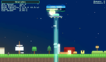 Collect cows and humans to upgrade your spaceship and your "farming"!